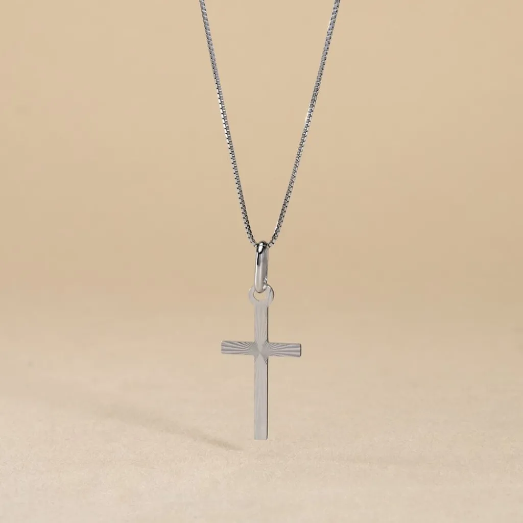 Pendentif Or Blanc 375/1000 Croix Religieuse Striée