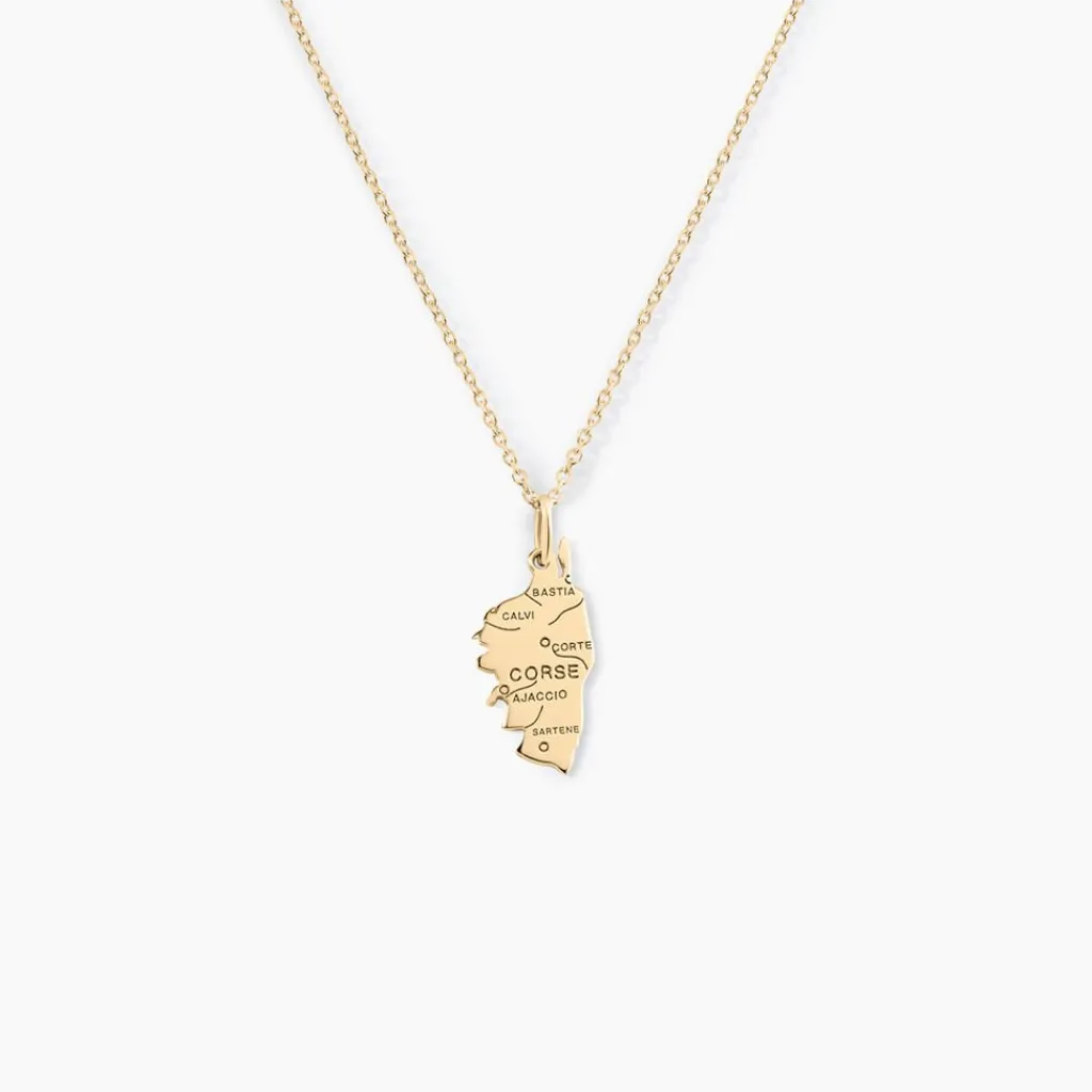 Pendentif Plaqué Or Jaune Carte Corse Avec Villes Hauteur 2cm