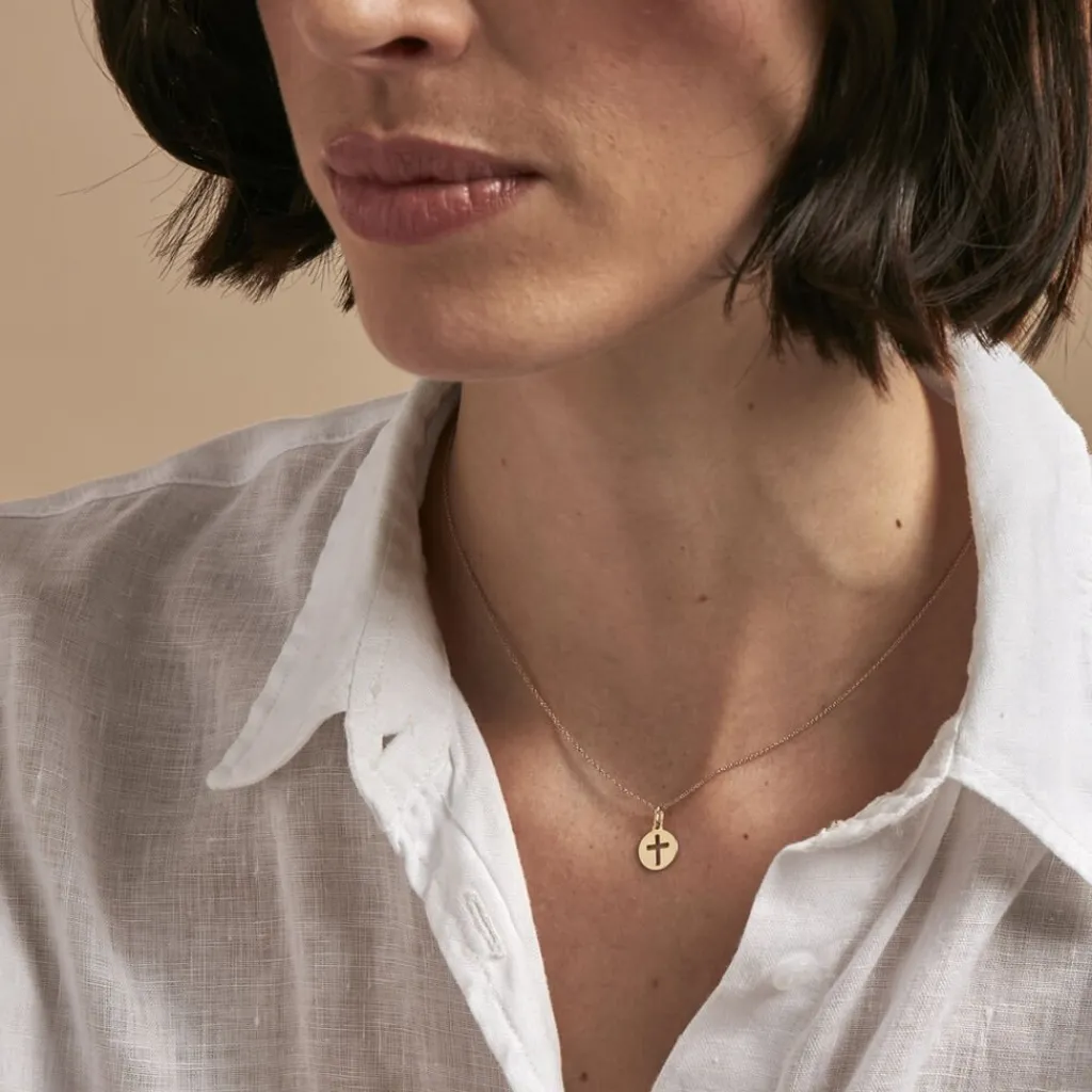 Pendentif Or Jaune 375/1000 Rond Croix Ajourée Diamètre 9.5mm