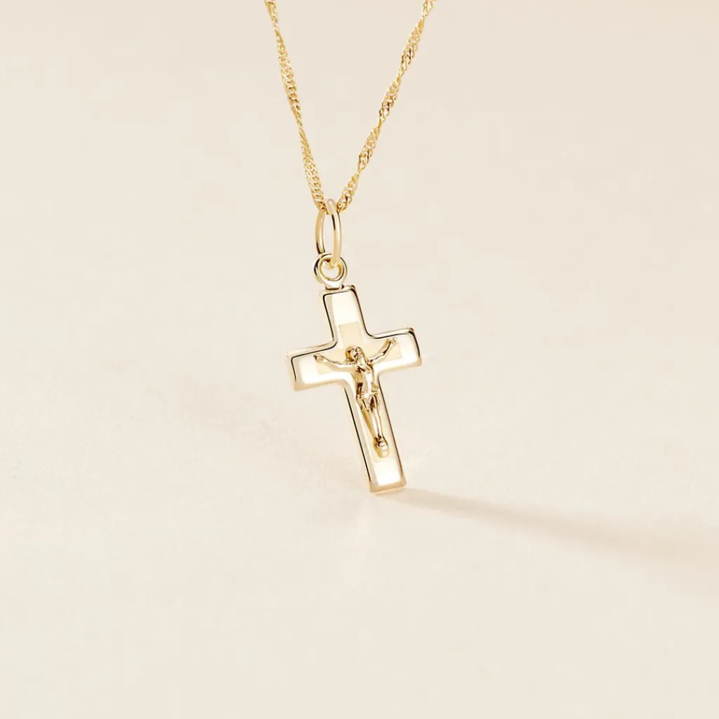 Pendentif Or Jaune 375/1000 Motif Croix Christ Finiton Lisse Et Mat
