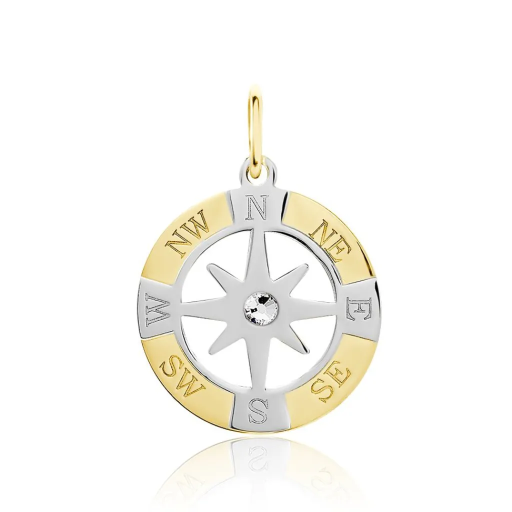 Pendentif Or Bicolore 375/1000 Rose Des Vents Oxyde De Zirconium Centrale Diamètre 16.5mm