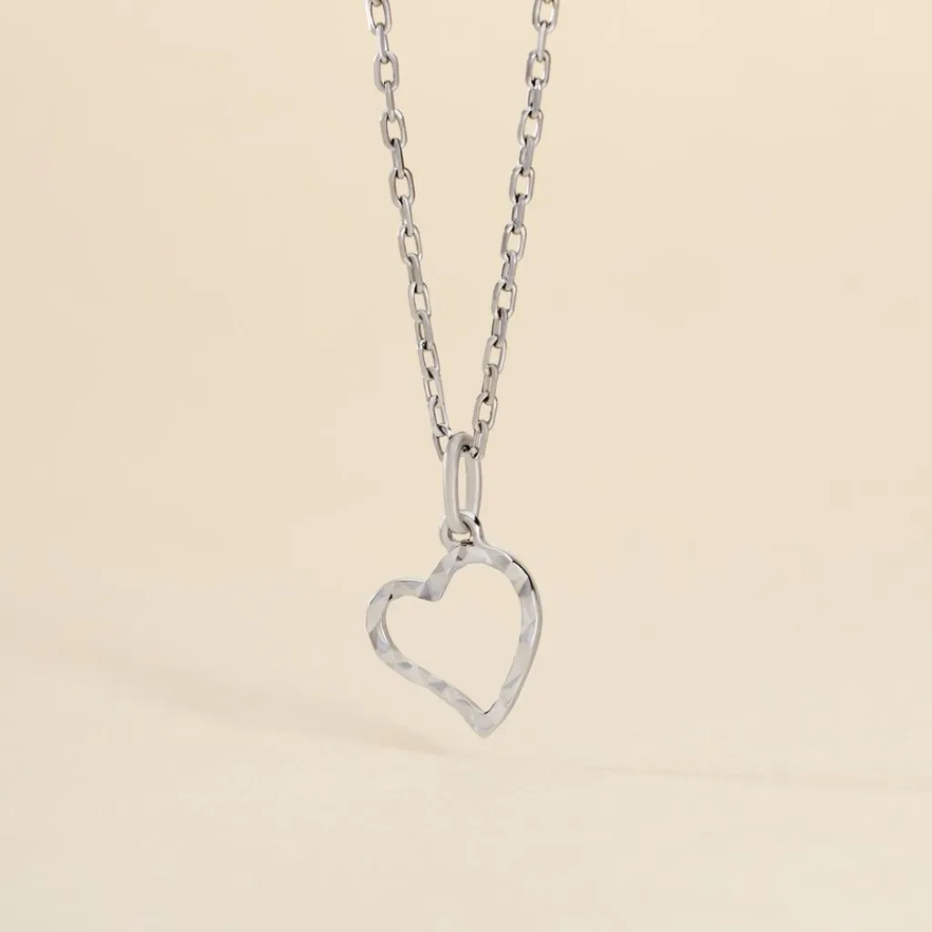 Pendentif Or Blanc 375/1000 Coeur Ajoure