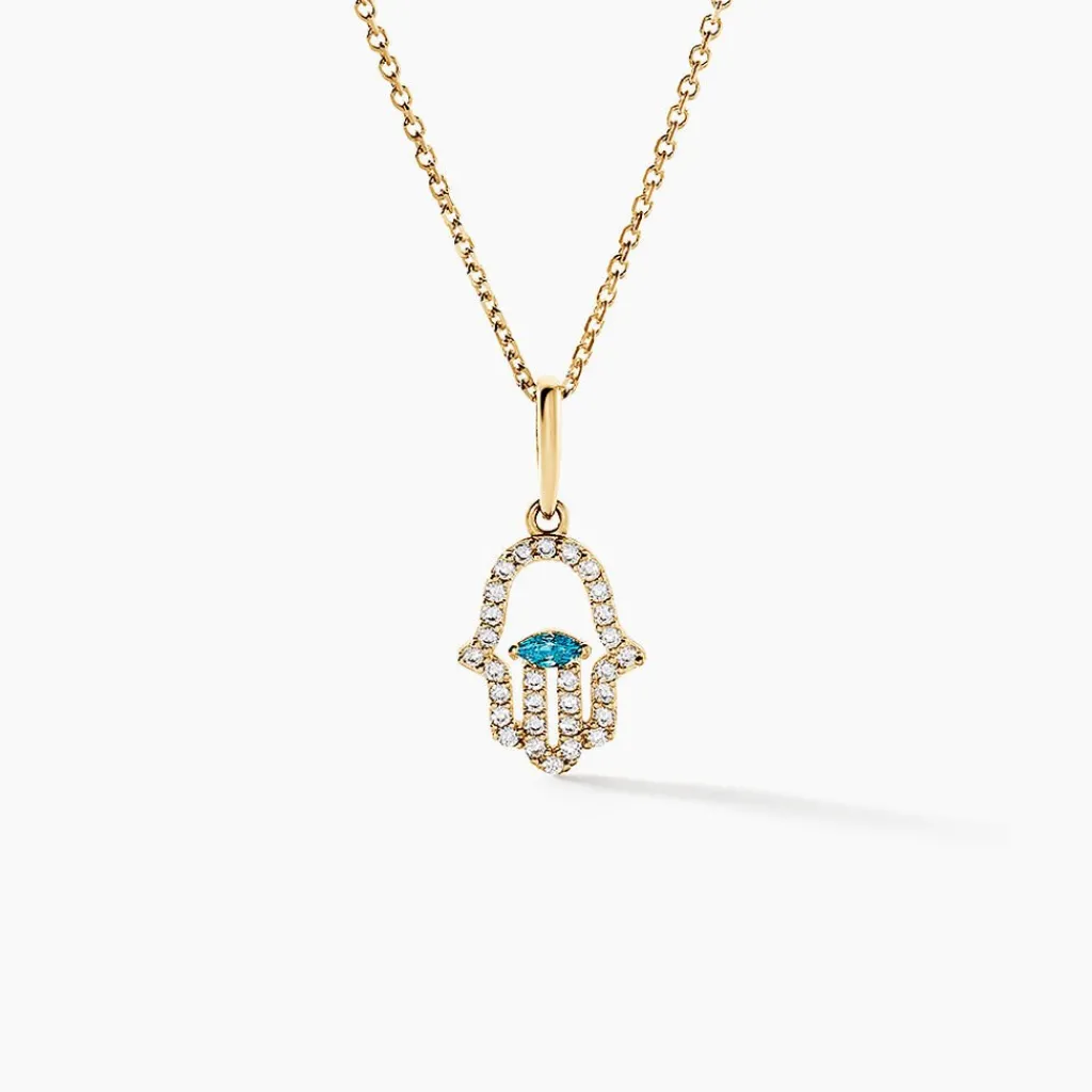 Pendentif Or Jaune 375/1000 Main De Fatma Pavage Oxydes De Zirconium Et 1 Oxyde Bleu Serti Griffes Longueur 1.7cm