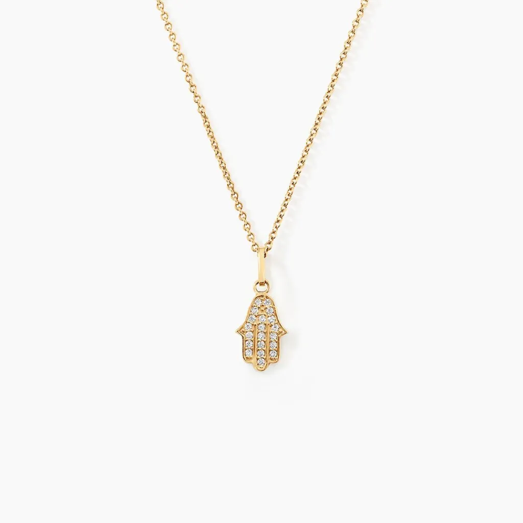 Pendentif Or Jaune 750/1000 Main De Fatma Pavage Oxydes De Zirconium