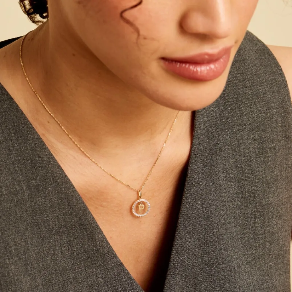 Pendentif Lettre P Or Jaune 375/1000 Entourage Oxyde De Zirconium Blanc