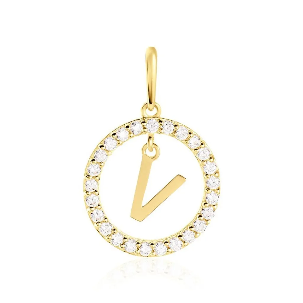 Pendentif Lettre V Or Jaune 375/1000 Entourage Oxyde De Zirconium Blanc