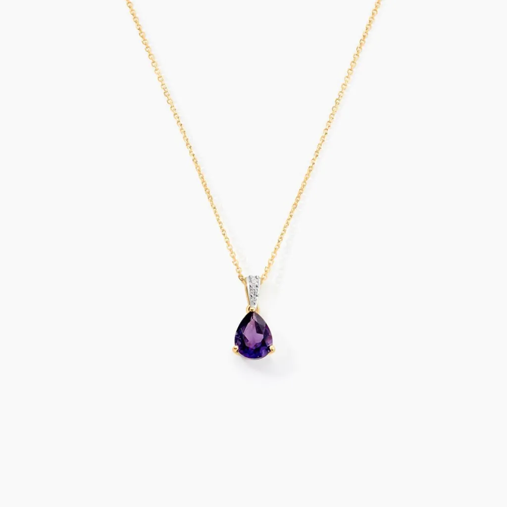 Pendentif Or Jaune 375/1000 Poire Amethyste Violet 1.3 Cts Serti 3 Griffes