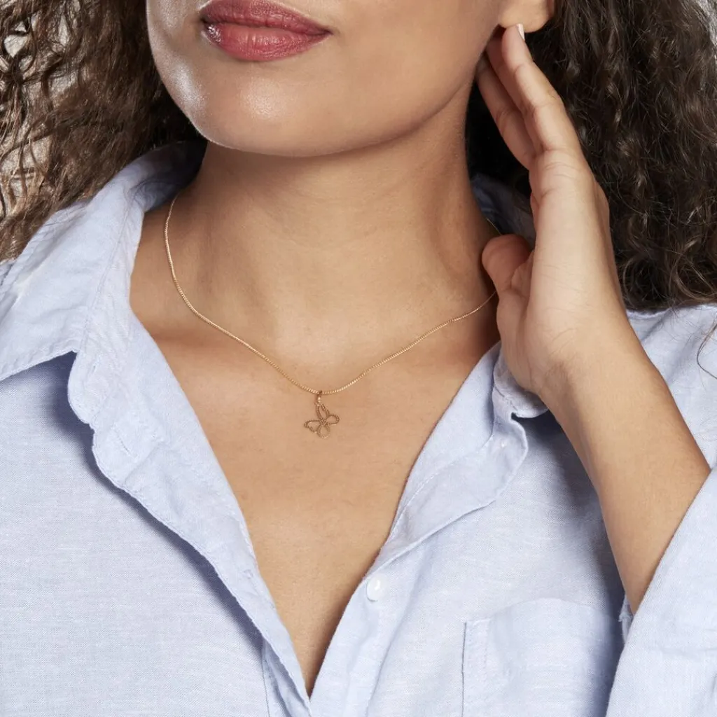 Pendentif Or Jaune 375/1000 Forme Papillon Effet Diamante