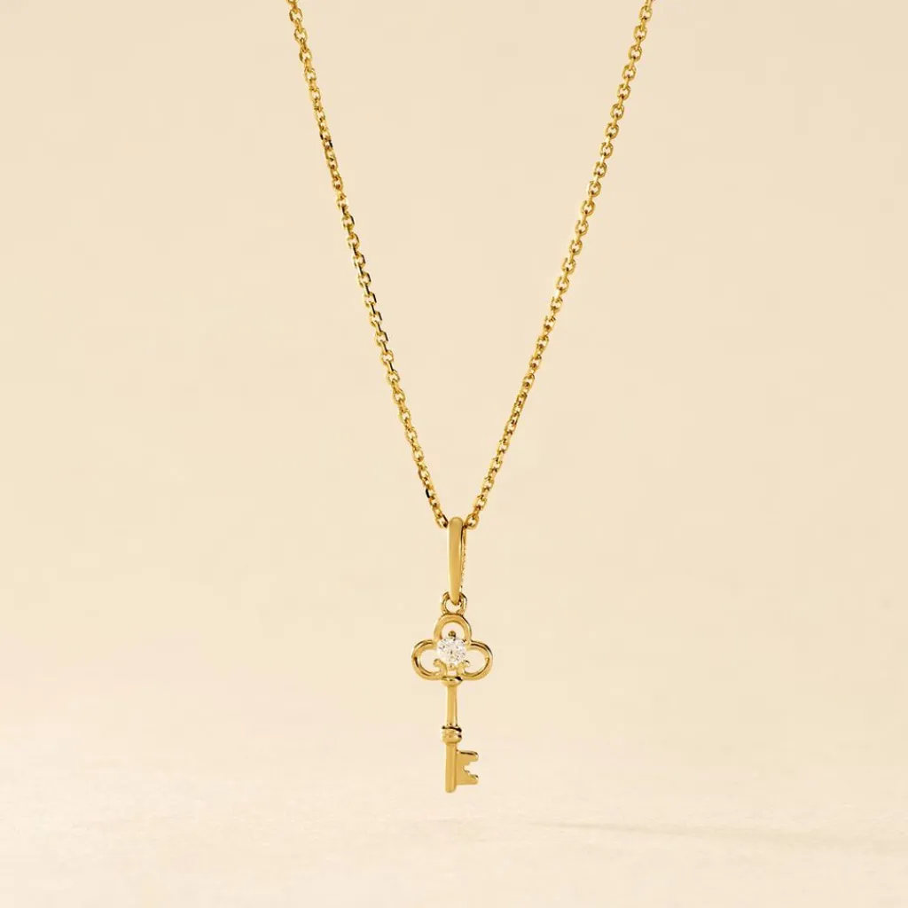 Pendentif Or Jaune 375/1000 Cle Oxyde De Zirconium Serti Griffes