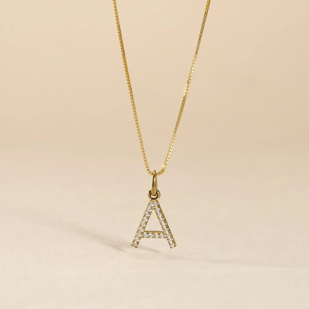Pendentif Or Jaune 375/1000 Lettre A Oxydes De Zirconium Serti Griffes