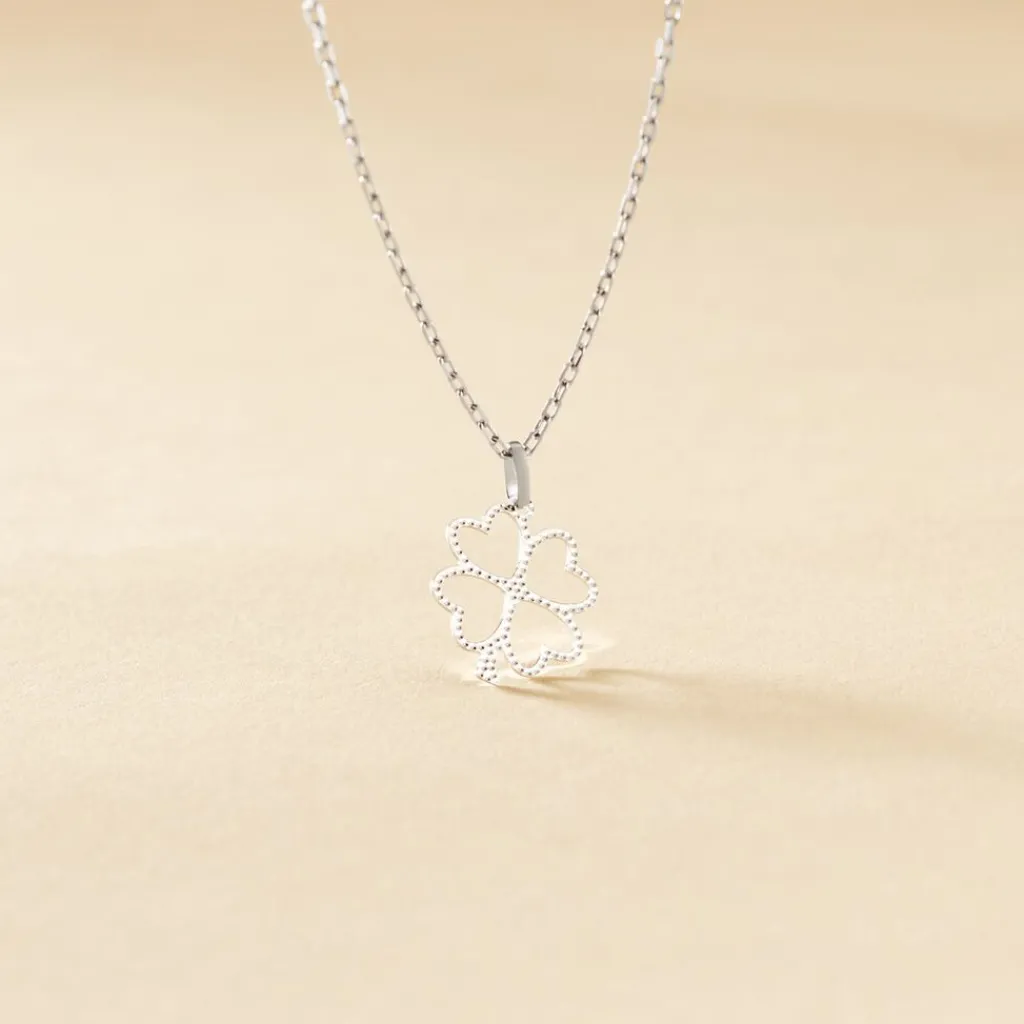 Pendentif Or Blanc 375/1000 Forme Trefle Effet Diamante