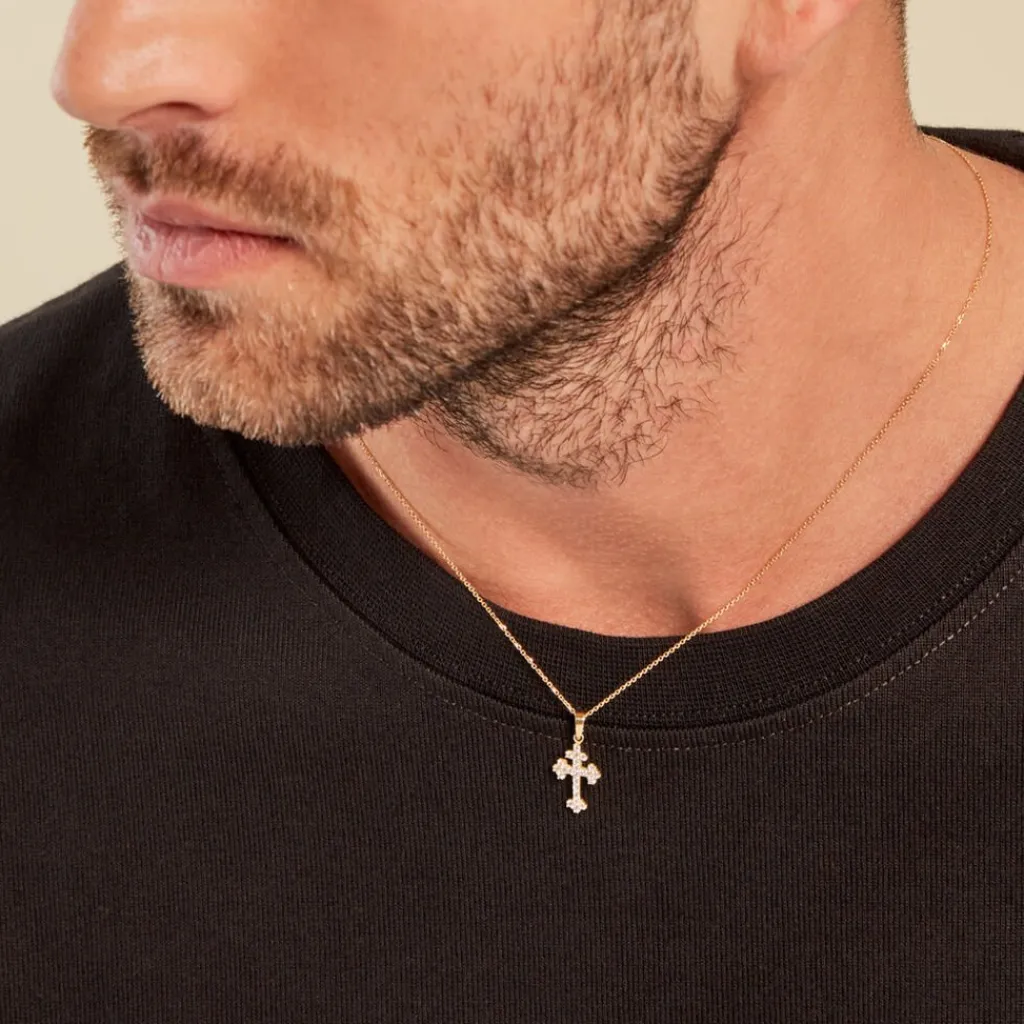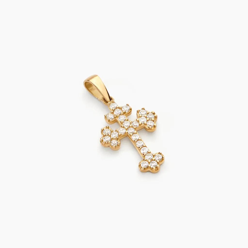 Pendentif Or Jaune 375/1000 Croix Oxyde De Zirconium Serti Griffes