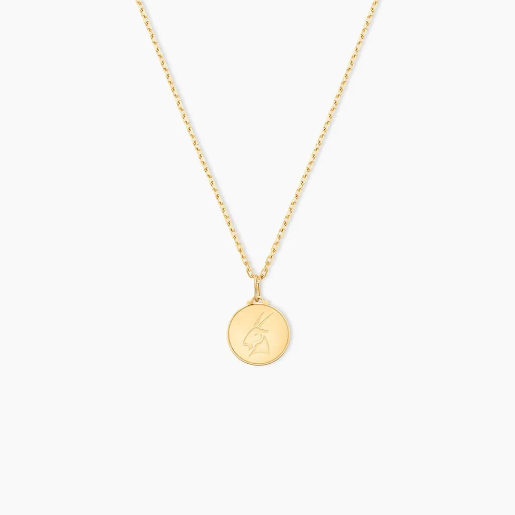 Pendentif Or Jaune 375/1000 Medaille Ronde Motif Capricorne