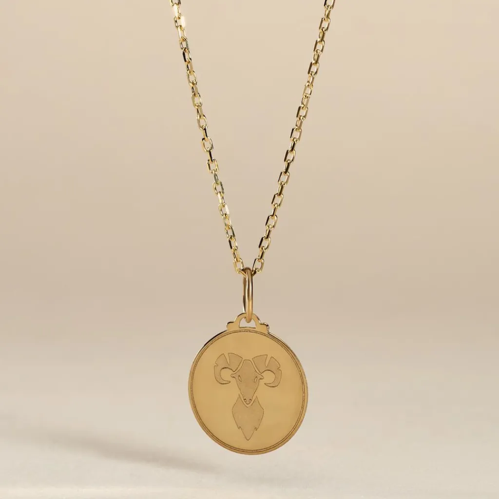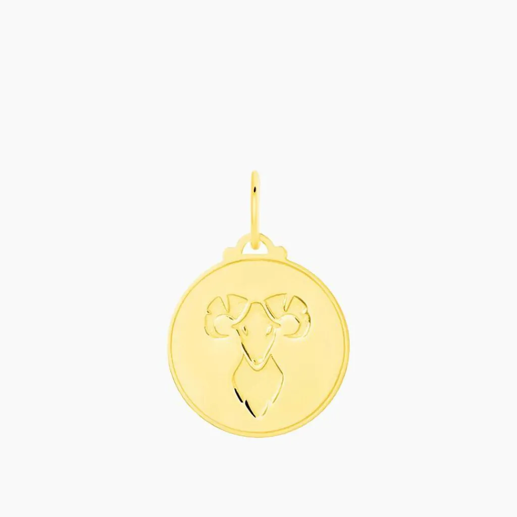 Pendentif Or Jaune 375/1000 Medaille Ronde Motif Belier