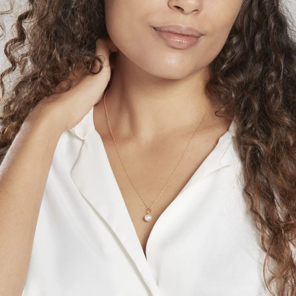 Pendentif Or Jaune 375/1000 Ronde Perle De Culture Nacre 7/7.5mm