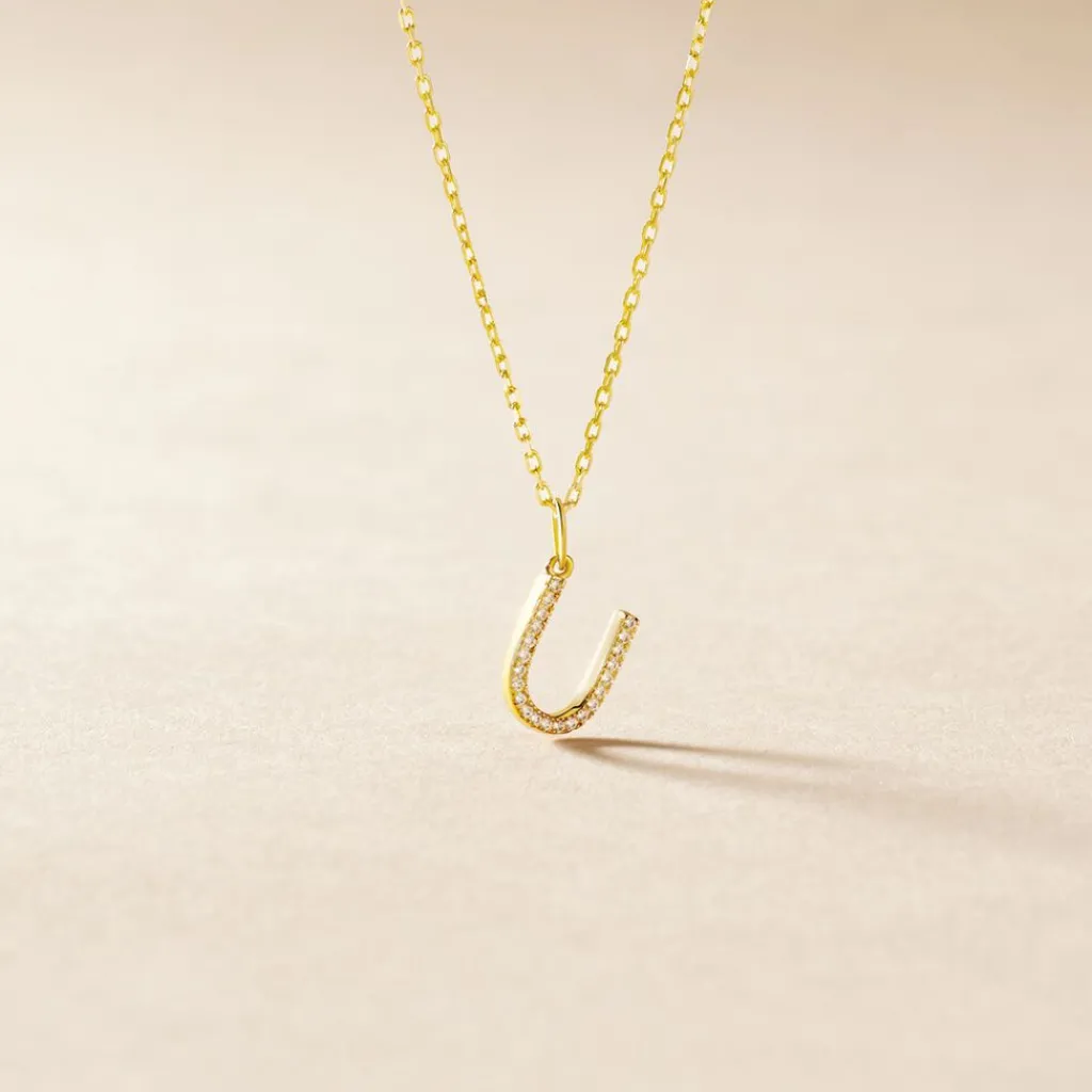 Pendentif Or Jaune 375/1000 Lettre U Oxydes De Zirconium