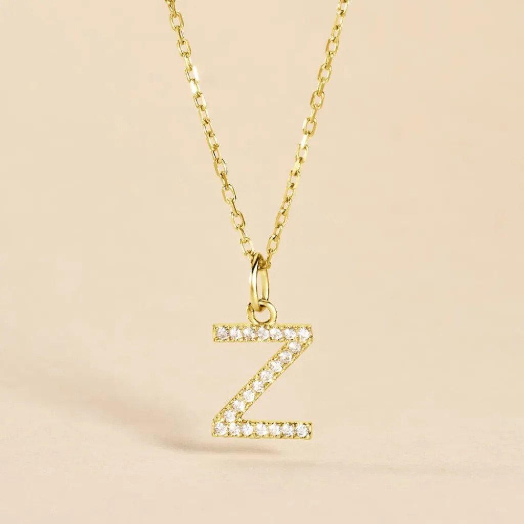 Pendentif Or Jaune 375/1000 Lettre Z Oxydes De Zirconium