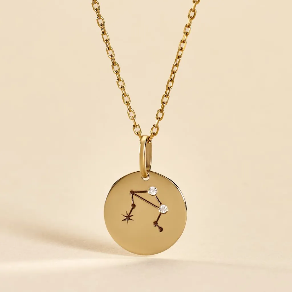 Pendentif Or Jaune 375/1000 Zodiaque Balance Oxyde De Zirconium 0.045cts Serti Grains