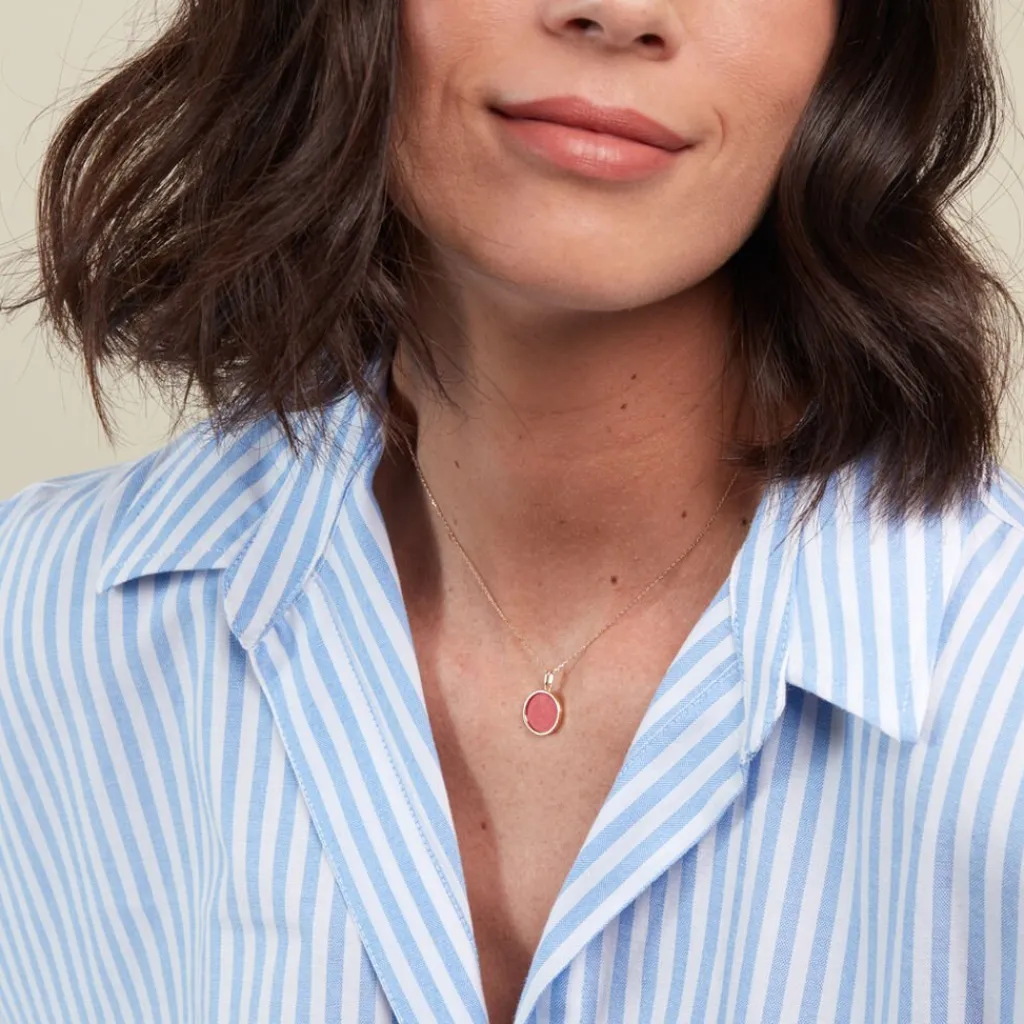 Pendentif Or Jaune 375/1000 Forme Ronde Corail 1.3 Cts