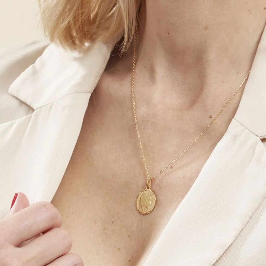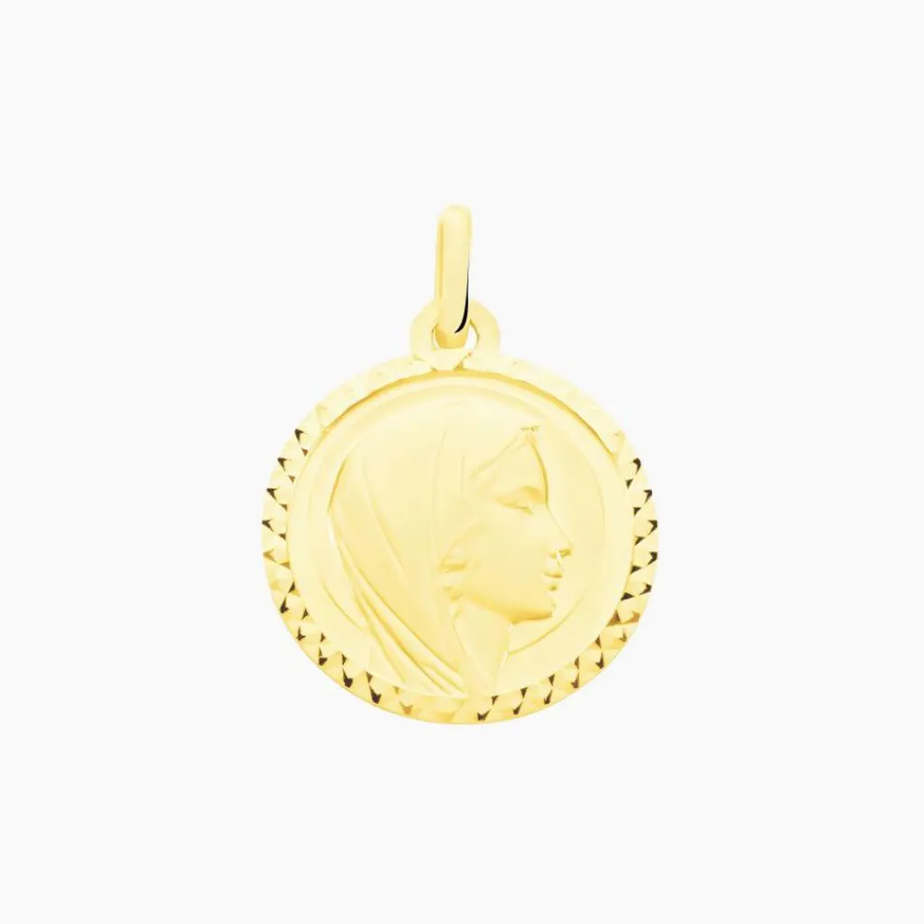 Medaille Or Jaune 375/1000 Medaille Ronde Striee Motif La Vierge Marie Diametre 17.4mm