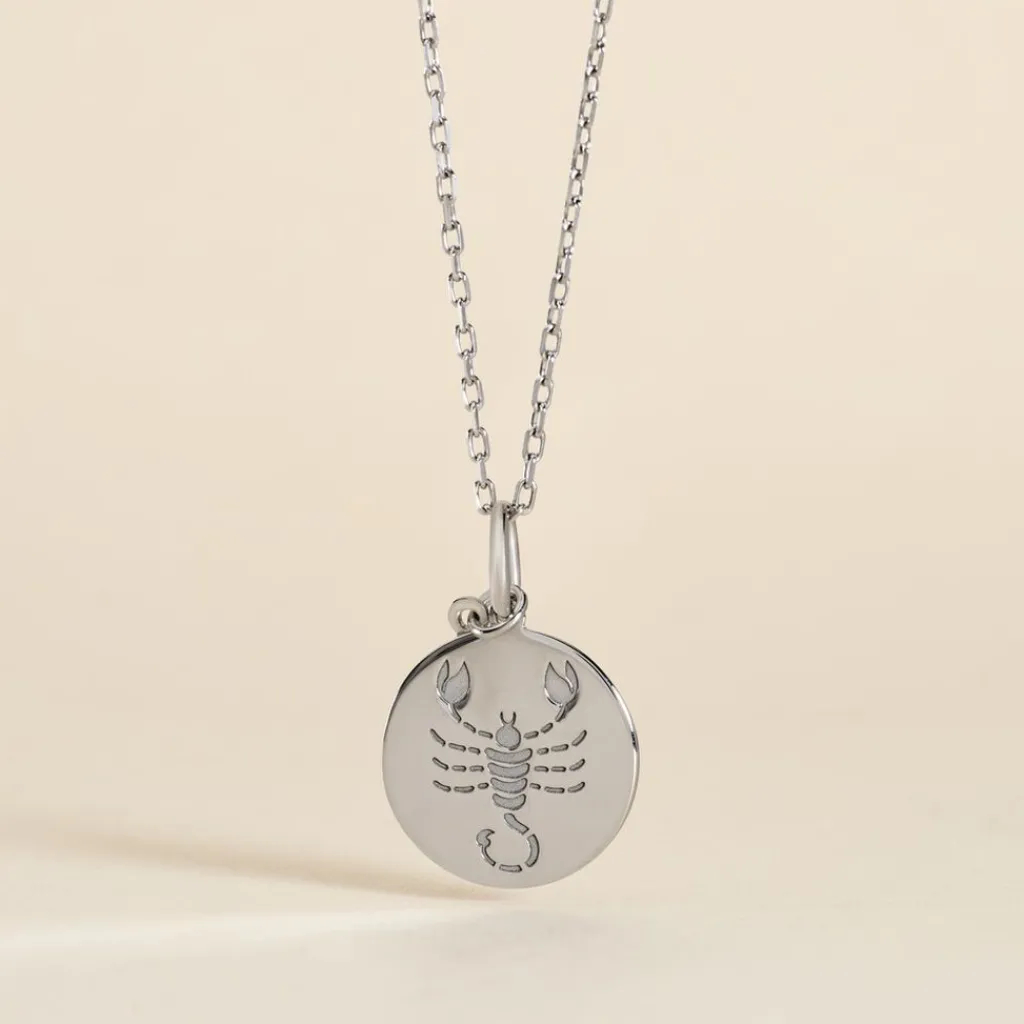 Pendentif Argent Blanc 925/1000 Medaille Ronde Motif Scorpion