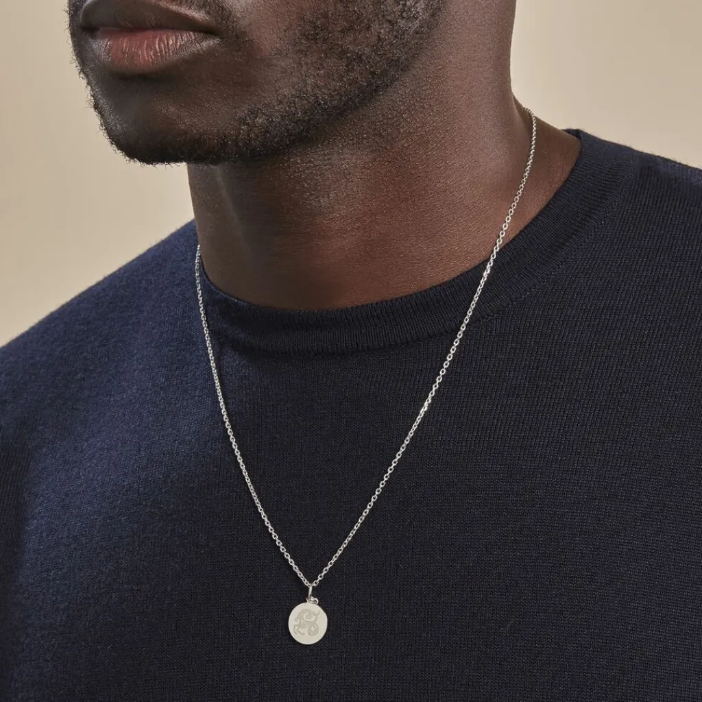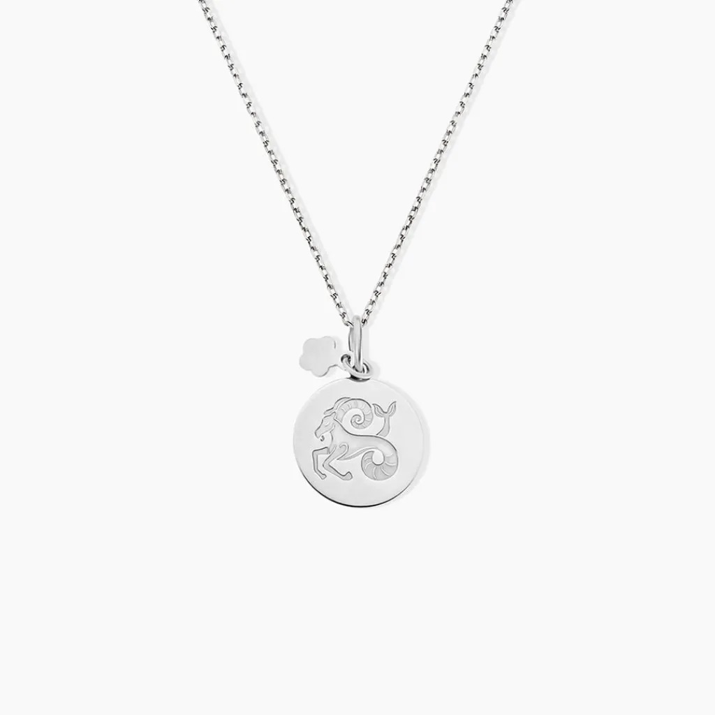 Pendentif Argent Blanc 925/1000 Medaille Ronde Motif Capricorne