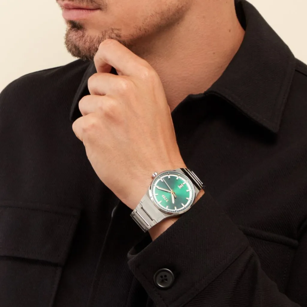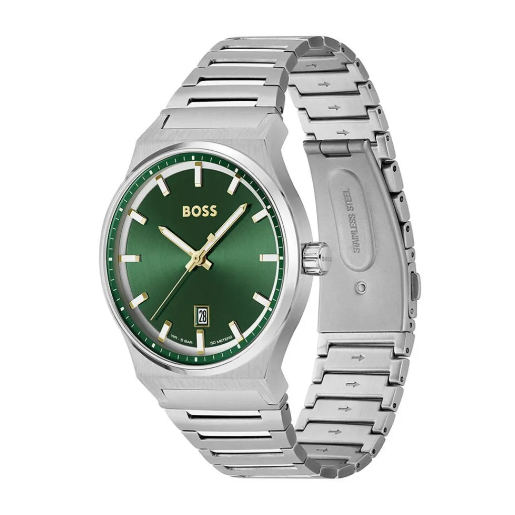 Montre Boss Candor Acier Argente Rond Quartz 41mm Fond Vert Bracelet Acier Argente 1514079