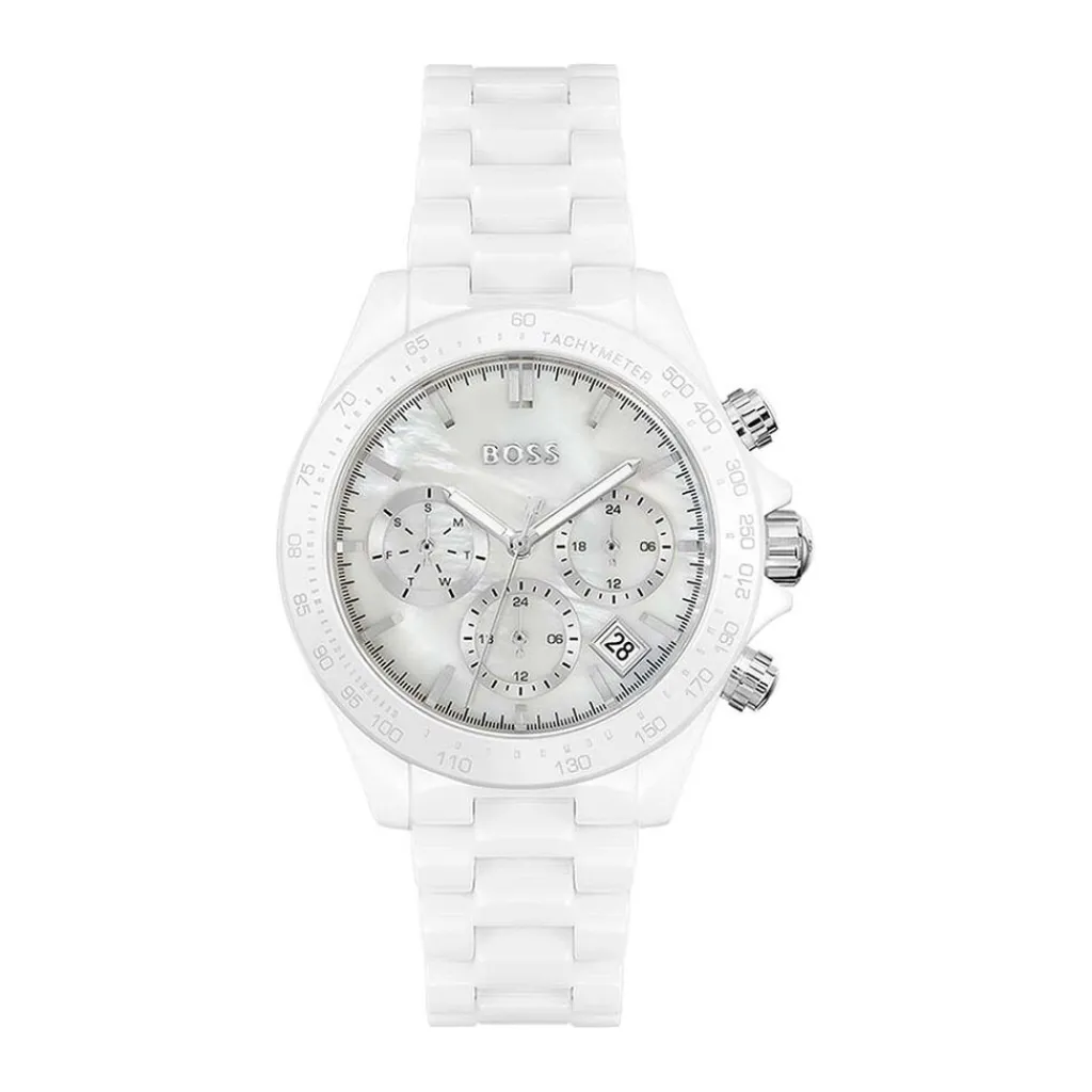 Montre Boss Novia Ceramic Ceramique Blanc Ronde Quartz 38mm Fond Blanc Bracelet Céramique Blanc 1502630