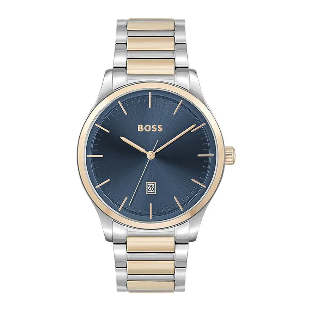 Montre Boss Reason Acier Doré Rose Ronde Quartz 43mm Fond Bleu Bracelet Acier Doré Rose 1513978