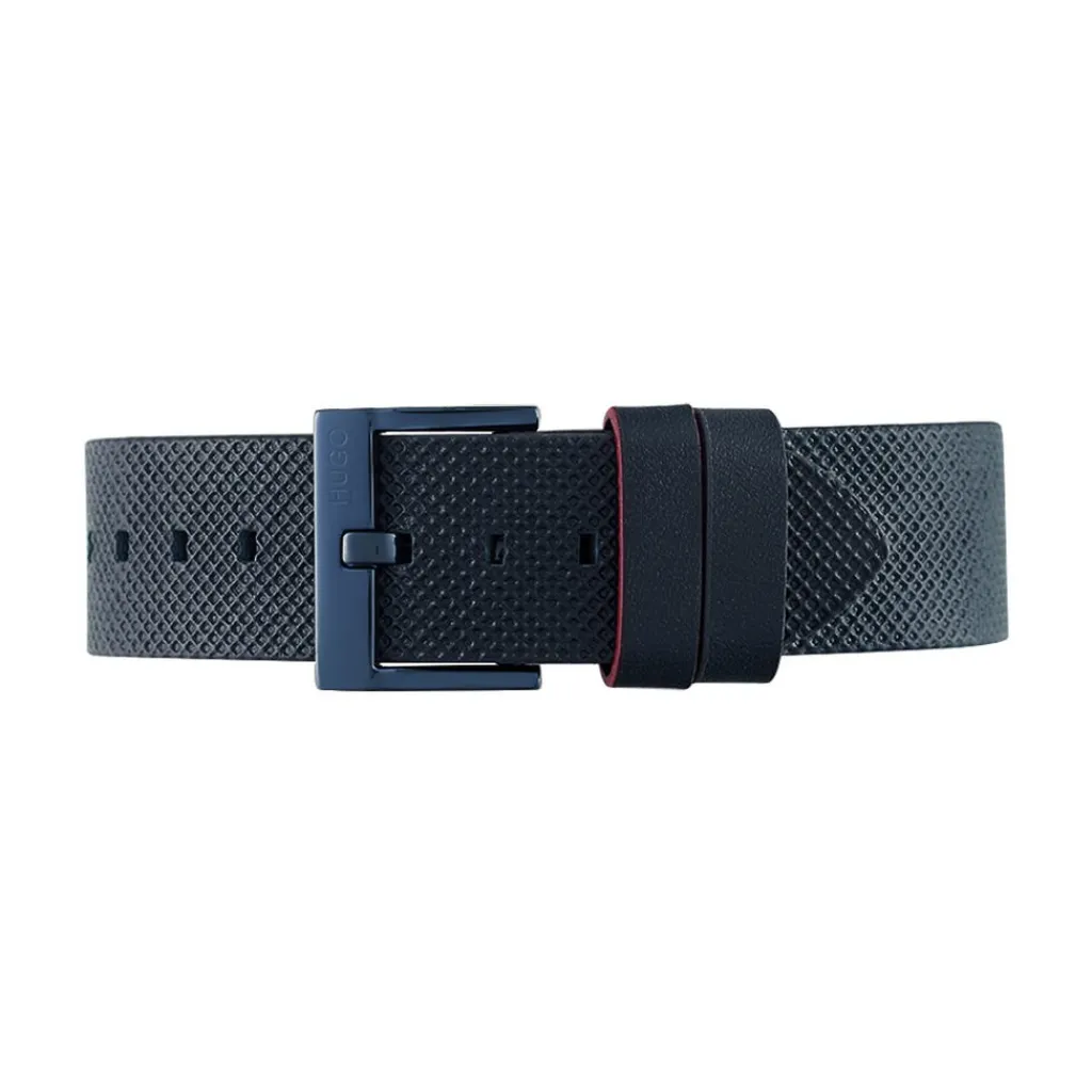 Montre Hugo Business Acier Bleu Ronde Quartz 42mm Fond Bleu Bracelet Cuir Bleu 1530033