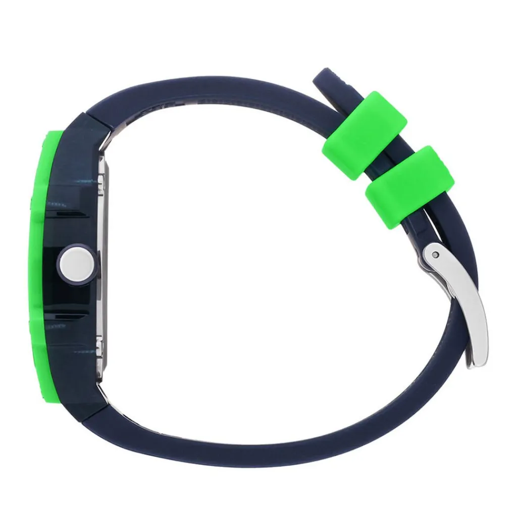 Montre Ice Watch Boliday Plastique Bleu Profond Tonneau Quartz 35mm Fond Bleu Profond Lunette Verte Bracelet Silicone Bleu Profond 023325