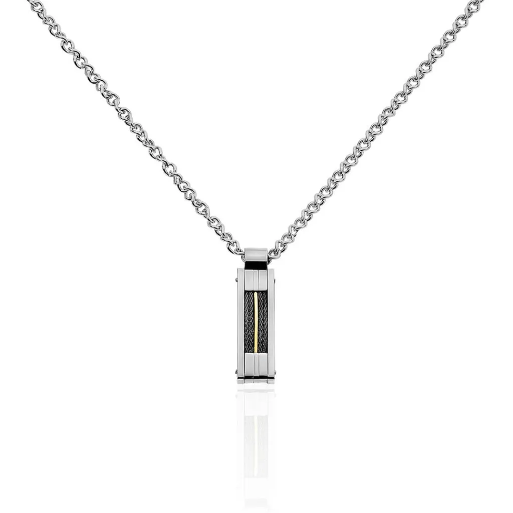 Collier Acier Cable Noir Et Or 50cm