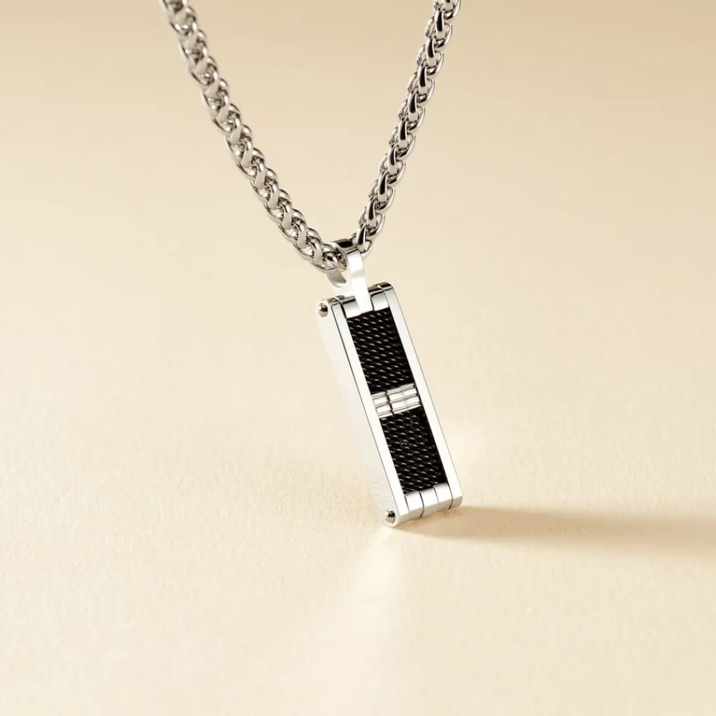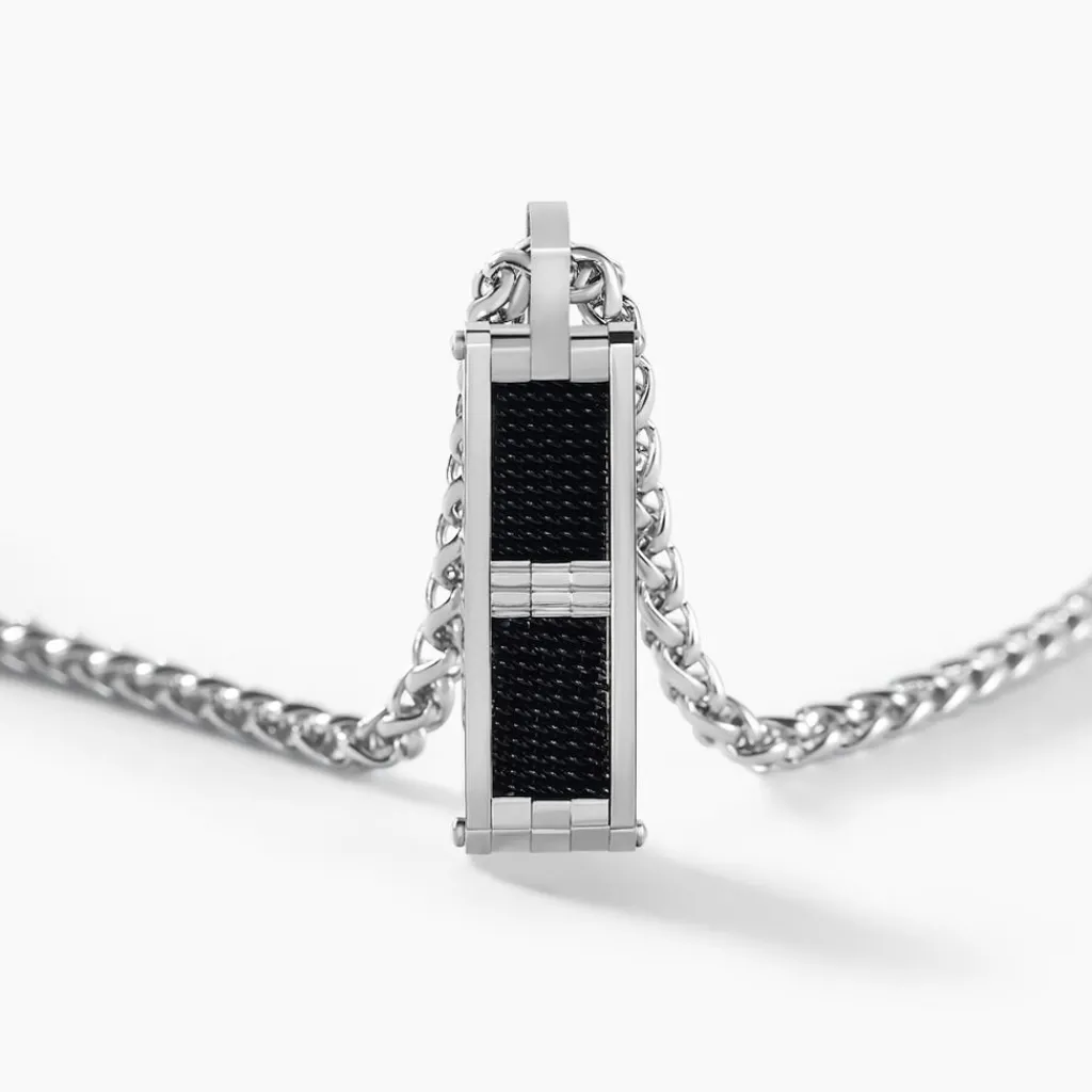 Collier Acier Plaque Rectangulaire Acier Et Pvd Noir 50cm