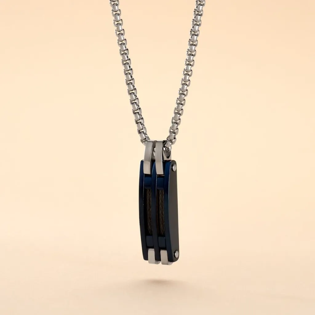 Collier Jourdan Priam Acier Blanc Et Bleu Cable Gris 55cm Jh110053n
