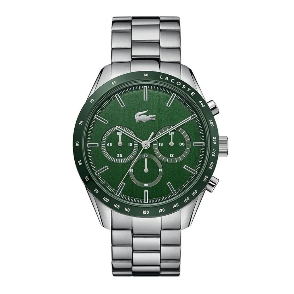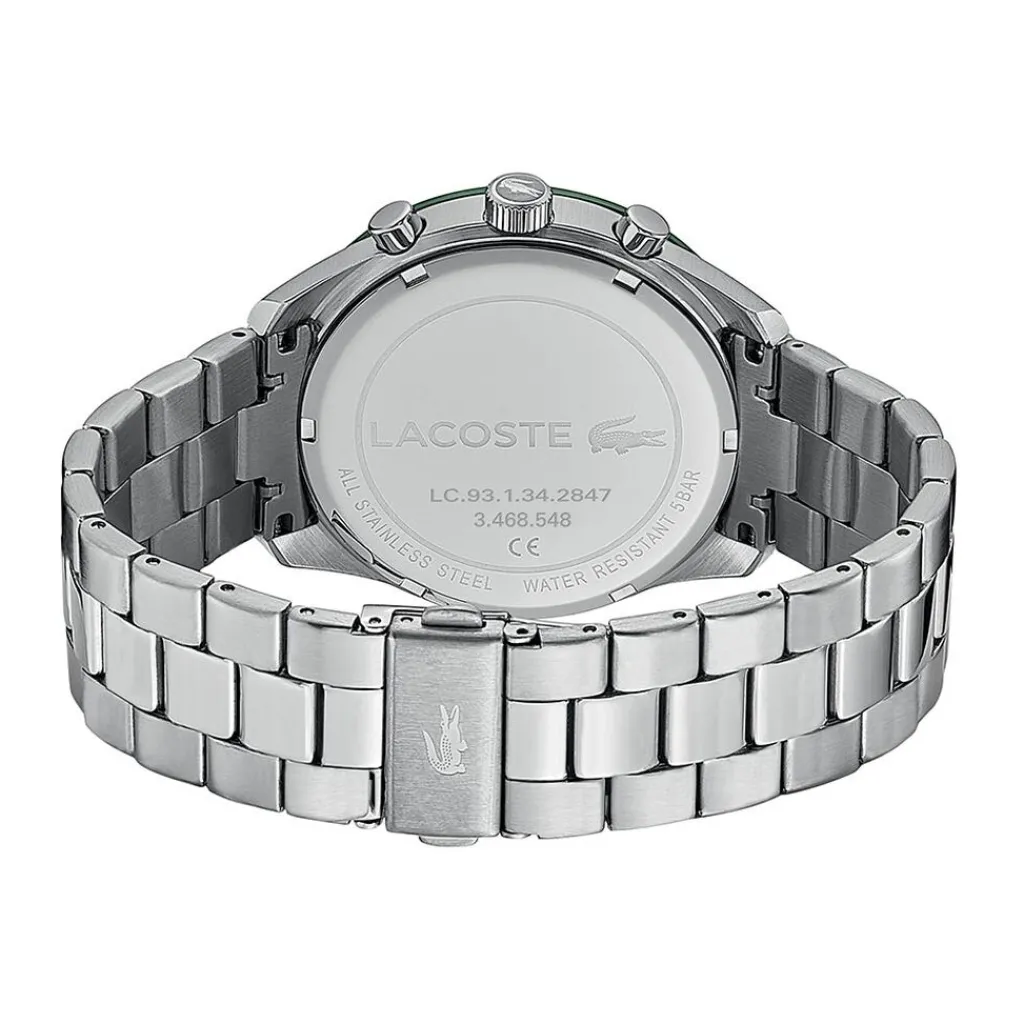 Montre Lacoste Boston Acier Gris Ronde Quartz Chronographe 42mm Fond Vert Bracelet Acier Argente 2011080