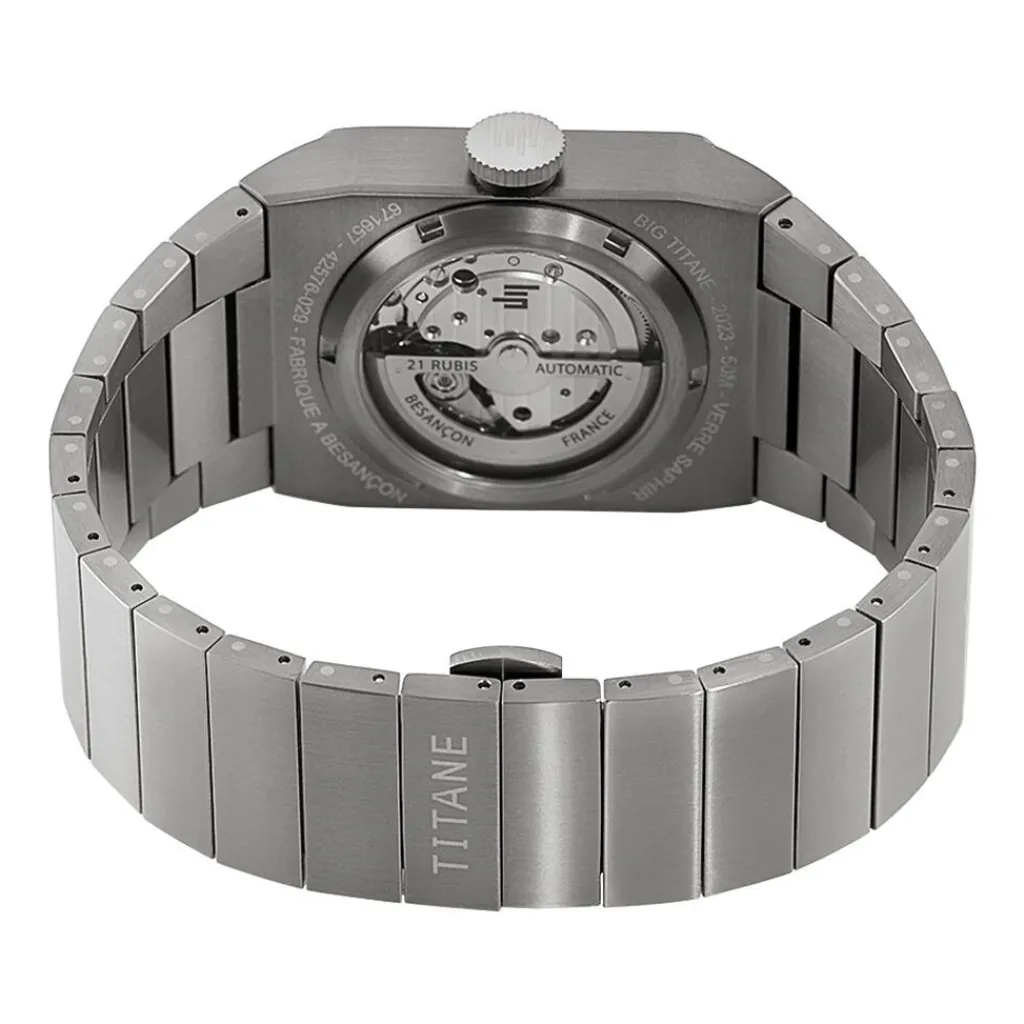 Montre Lip Big Titane Titane Gris Carré Automatique 35mm Fond Noir Bracelet Titane Gris 671657
