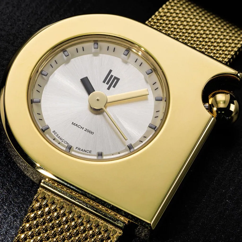 Montre Lip Mach 2000 Mini Moon Acier Doré Ronde Quartz 30mm Fond Doré Bracelet Acier Doré 671168