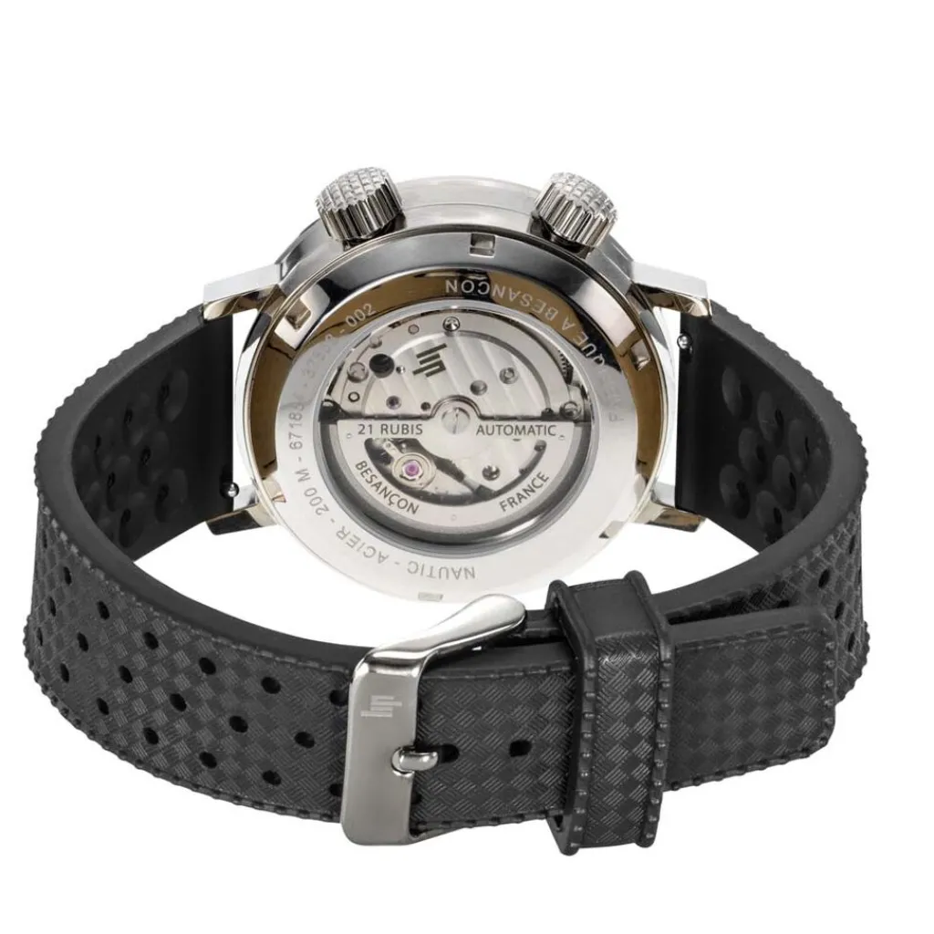 Montre Lip Nautic Ocean Acier Argente Ronde Automatique 41mm Fond Bleu Bracelet Plastique Noir 671854