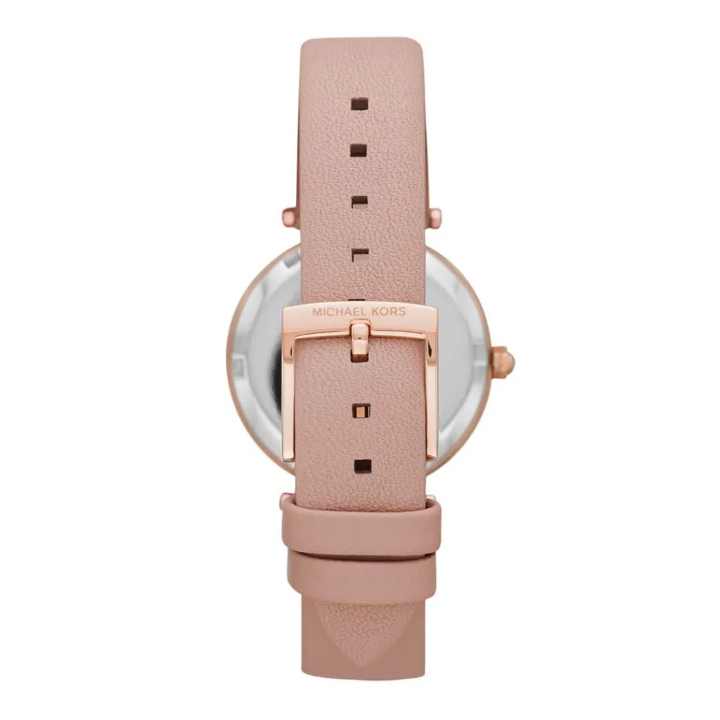 Montre Michael Kors Parker 33 Acier Doré Rose Ronde Quartz 33mm Fond Blanc Bracelet Cuir Rose Mk2914