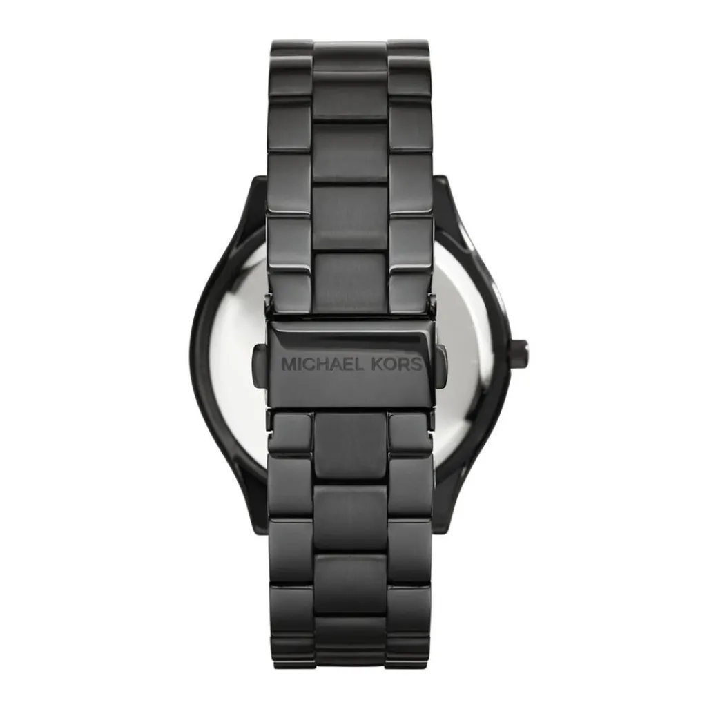 Montre Michael Kors Slim Runway Acier Noir Ronde Quartz 42mm Fond Noir Bracelet Acier Noir Mk3221