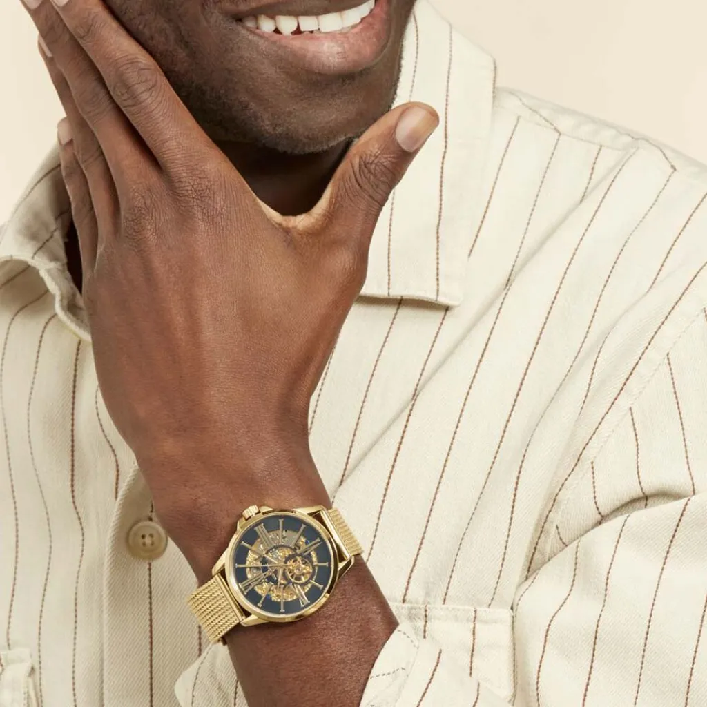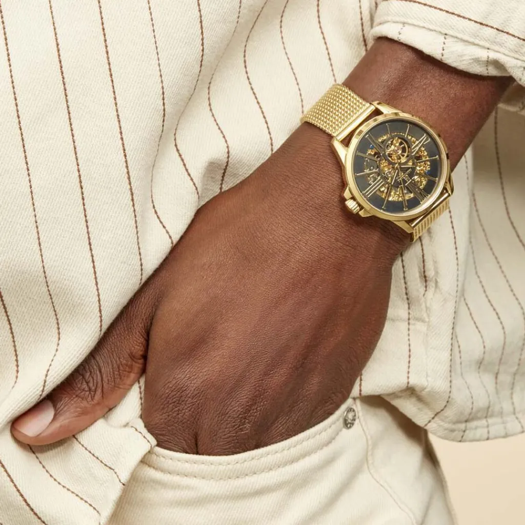 Montre Montignac Round Automatique Acier Dore Ronde Automatique 42mm Fond Noir Bracelet Acier Dore Mow150