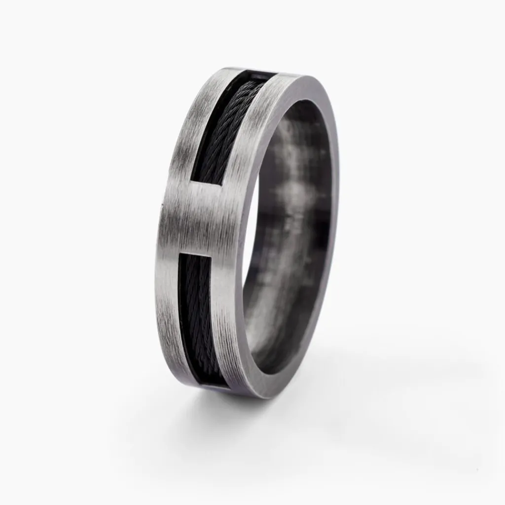 Bague Phebus Him Acier Pvd Noir Cable Noir