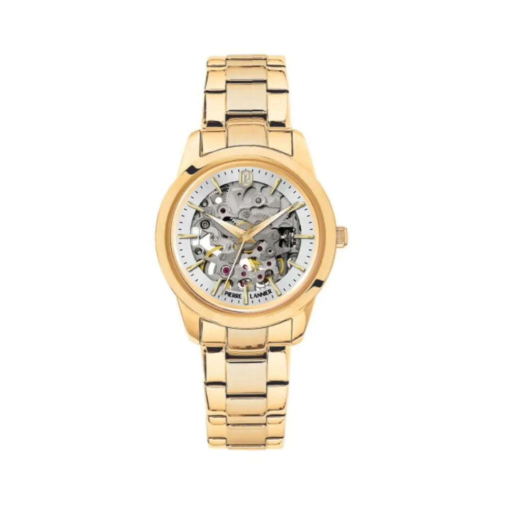 Montre Pierre Lannier Thea Acier Inoxydable Doré Automatique Ronde 35,5Mm Fond Argenté Coeur Ouvert Bracelet Acier Inoxydable Doré 144J522