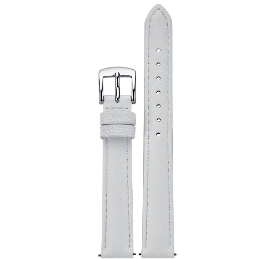 Bracelet De Montre Rochet Cuir D’agneau Mat Blanc Boucle Argentée 14/12mm