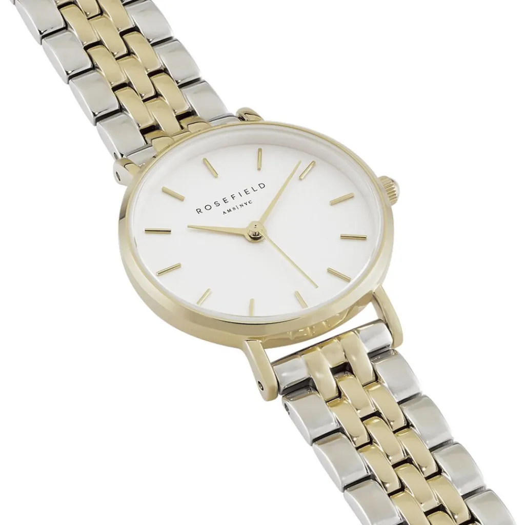 Montre Rosefield Small Edit Acier Doré Ronde Quartz 26mm Fond Blanc Bracelet Acier Bicolore 26sgd-269