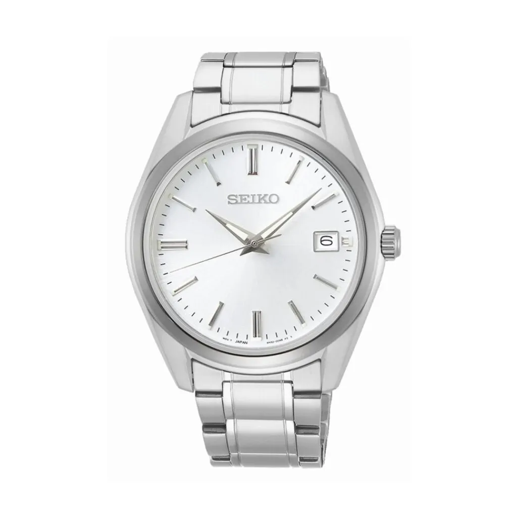 Montre Seiko Classique Acier Blanc Ronde Quartz 40.2mm Fond Blanc Bracelet Acier Blanc Sur307p1