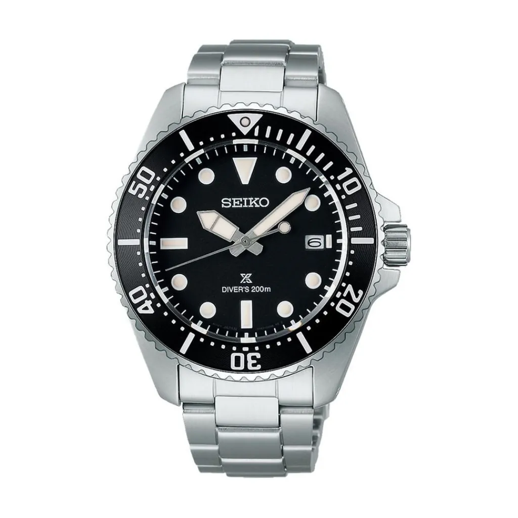 Montre Seiko Prospex Acier Argenté Ronde Quartz Solaire 41mm Fond Noir Lunette Acier Noire Bracelet Acier Argenté Sne597p1
