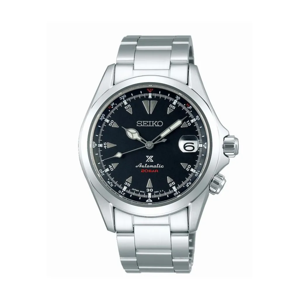 Montre Seiko Prospex Acier Blanc Ronde Automatique 39.5mm Fond Noir Bracelet Acier Blanc Spb117j1
