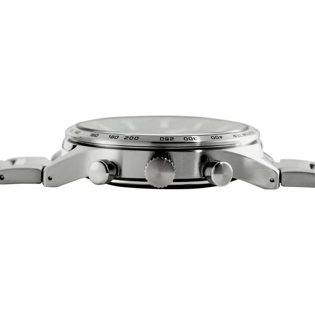 Montre Seiko Sport Acier Argenté Ronde Quartz Chronographe 43mm Fond Noir Lunette Aluminium Bracelet Acier Argenté Ssb413p1