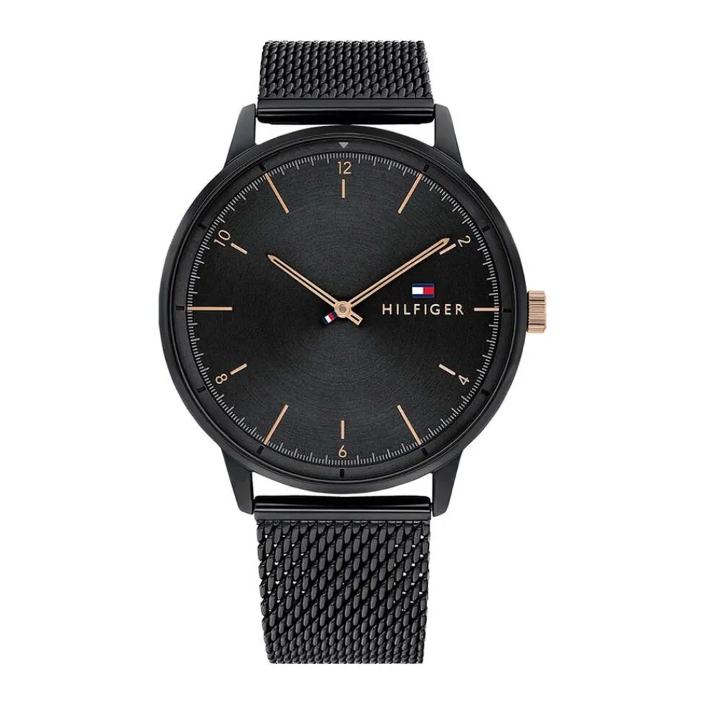 Montre Tommy Hilfiger Hendrix Acier Noir Ronde Quartz 43mm Fond Noir Bracelet Acier Maille Milanaise Noir 1791845